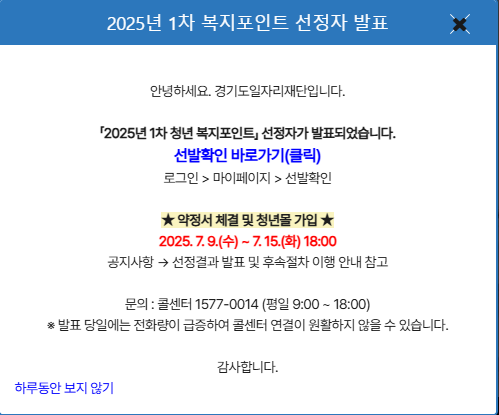 2025 경기도 청년복지 포인트 1차 선정자 발표일