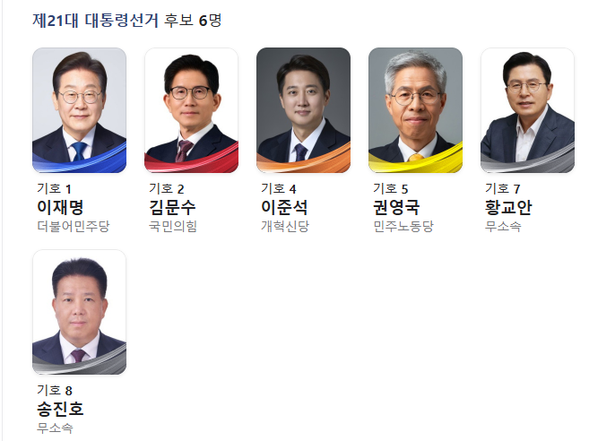 이번 21대 대통령 선거는 대한민국의 미래를 좌우할 중대한 결정입니다. 각 후보의 공약과 비전을 꼼꼼히 비교하며, 현명한 선택을 하시길 바랍니다.